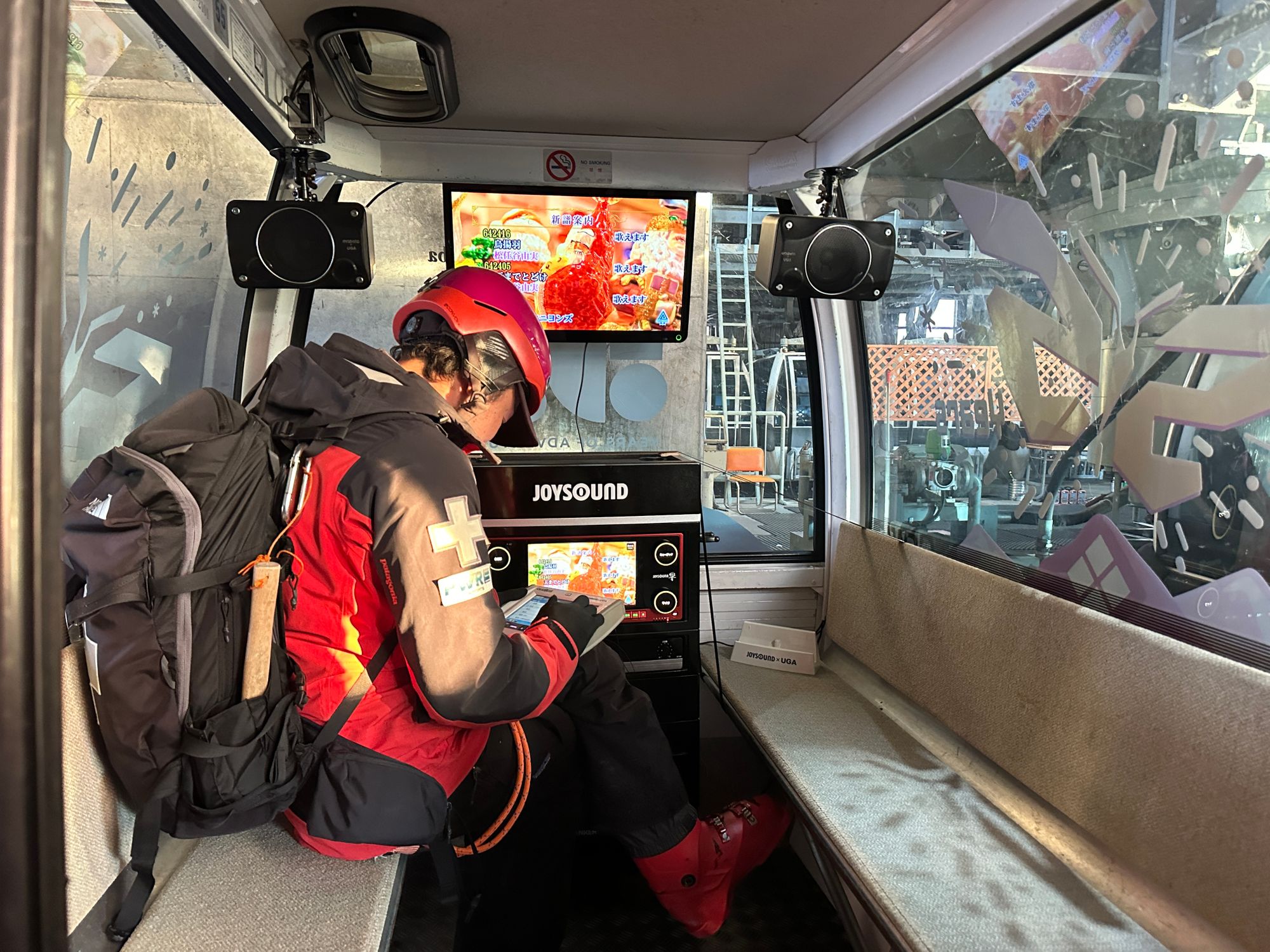 Goryu’s patrol blog describes a “karaoke-equipped gondola” that lets riders enjoy karaoke during the roughly 7-minute ride, positioning it as a fun, one-off style experience rather than a standard cabin.